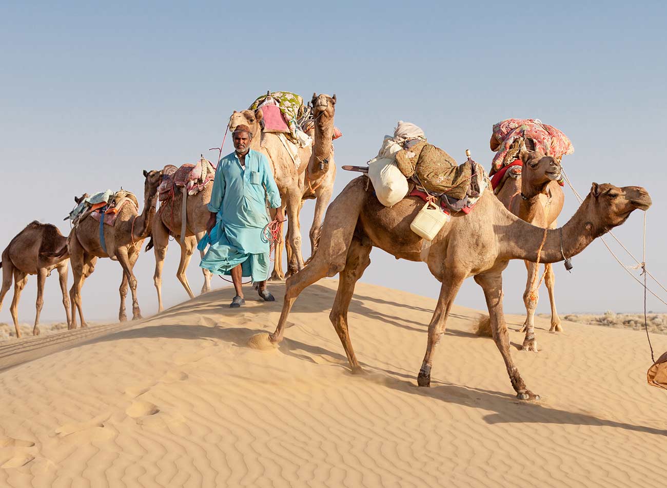 Riding camels through the Sahara Desert